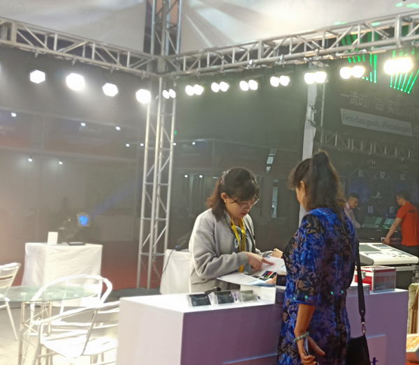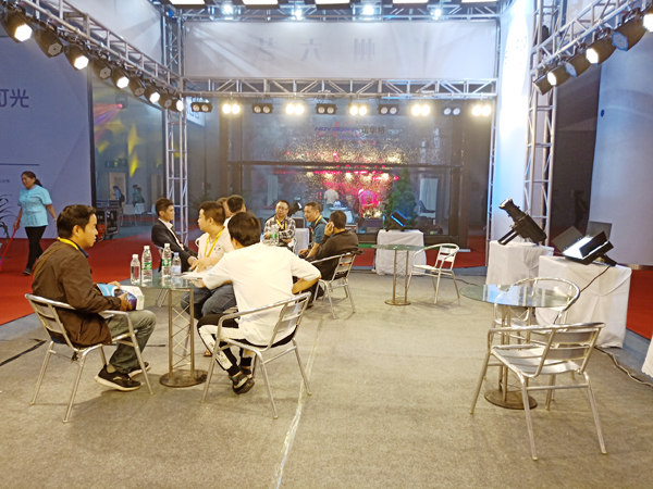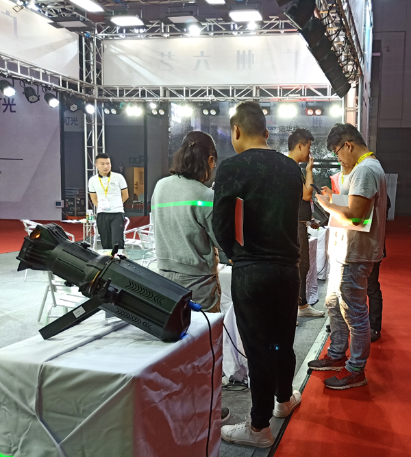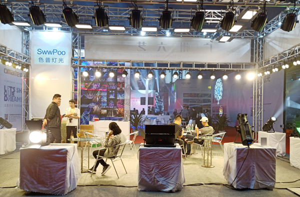 在六藝展位上,SwwPoo燈光產(chǎn)品琳瑯滿目,現(xiàn)場來賓絡(luò)繹不絕。展會上不僅有舞臺專業(yè)的面光燈,
